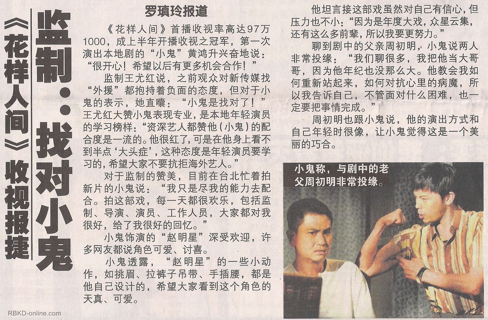ã€ŠèŠ±æ ·äººé—´ã€‹é¦–æ’æ”¶è§†çŽ‡é«˜è¾¾97万1000,æˆä¸ŠåŠå¹´å¼€æ’æ”¶è§†ä¹‹å† å†›ï¼Œç¬¬ä¸€æ¬¡æ¼”å‡ºæ–°åŠ å¡å‰§çš„“å°é¬¼â€é»„鸿å‡å…´å¥‹åœ°è¯´ï¼šâ€œå¾ˆå¼€å¿ƒï¼å¸Œæœ›ä»¥åŽæœ‰æ›´å¤šæœºä¼šåˆä½œï¼â€