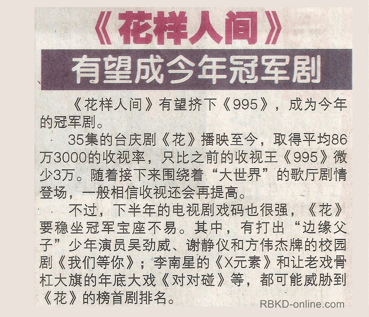 Categorised in CH, ChinaPress ä¸åœ‹å ±, Joys of Life èŠ±æ ·äººé—´, Ratings 节目收视率, Shin Min.