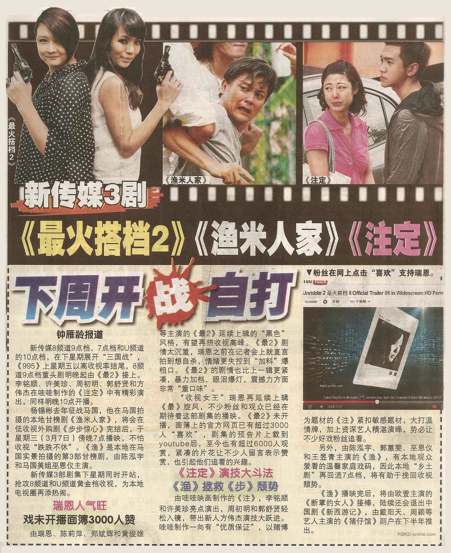 æ–°ä¼ åª’8频é“9点档ã€7点档和U频é“çš„10点档,在下星期展开“三国战â€ï¼Œã€Š995》上星期五以高收视率结尾,8频é“9点档é‡å¤´å‰§æ˜Žæ™šç”±ã€Šæœ€ç«ææ¡£2》接上。