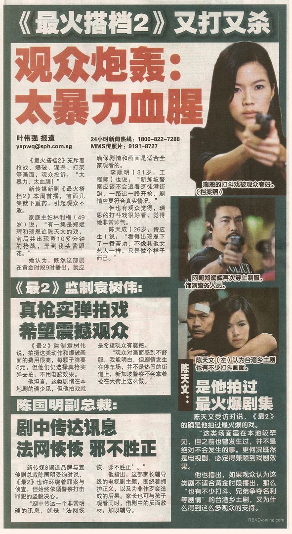 由瑞æ©ã€é™ˆèމèã€éƒ‘斌辉和黄俊雄ç‰ä¸»æ¼”的《最2》延ç»ä¸Šè¾‘的“黑色â€é£Žæ ¼ï¼Œæœ‰æœ›å†æ‹¼æ”¶è§†é«˜å³°ã€‚《最2》剧情太沉é‡ï¼Œç‘žæ©ä¹‹å‰åœ¨è®°è€…会上就直言æ‹åˆ°æƒ³è‡ªæ€ï¼Œæƒ…ç»ªæ›´å¤±æŽ§åˆ°â€œåŠ æ–™â€çˆ†ç²—å£ã€‚《最2ã€‹çš„å‰§æƒ…ä¹Ÿæ¯”ä¸Šä¸€è¾‘æ›´ç´§å‡‘ï¼Œæš´åŠ›åŠ æ¡£ã€çœ¼æ³ªçˆ†ç¯ï¼Œéœ‡æ’¼åŠ›æ–¹é¢éžå¸¸â€œé‡å£å‘³â€ã€‚