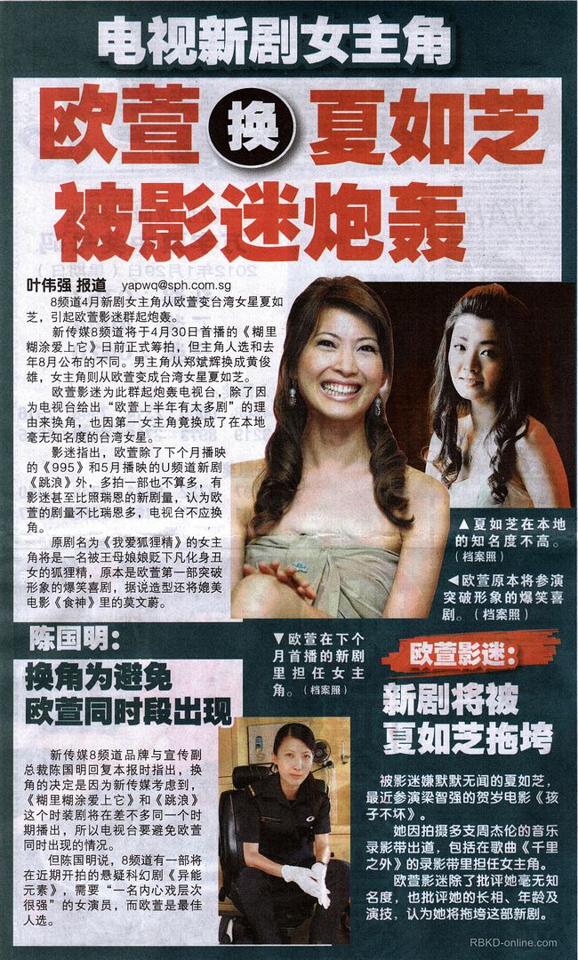 欧è±å½±è¿·ä¸ºæ¤ç¾¤èµ·ç‚®è½°ç”µè§†å°ï¼Œé™¤äº†å› 为电视å°ç»™å‡ºâ€œæ¬§è±ä¸ŠåŠå¹´æœ‰å¤ªå¤šå‰§â€çš„ç†ç”±æ¥æ¢è§’ï¼Œä¹Ÿå› ç¬¬ä¸€å¥³ä¸»è§’ç«Ÿæ¢æˆäº†åœ¨æ–°åР塿¯«æ— 知ååº¦çš„å°æ¹¾å¥³æ˜Ÿã€‚