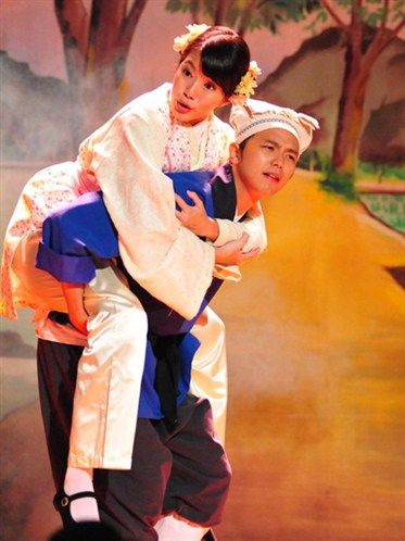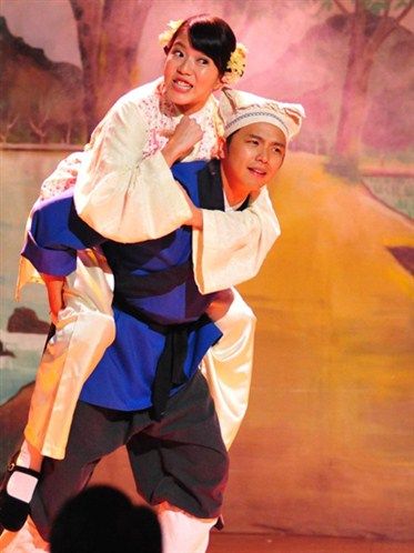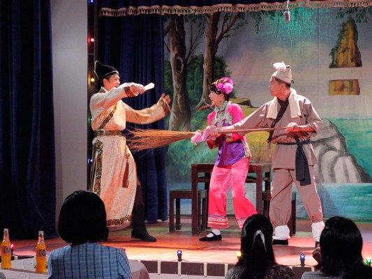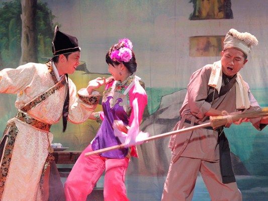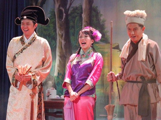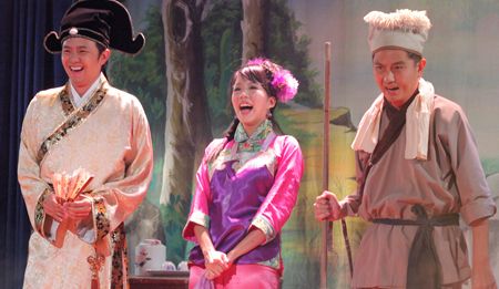 赵明星(å°é¬¼é¥°ï¼‰ã€éŸ©å’å’(瑞æ©é¥°ï¼‰å’Œèµµå¤§ç‹—ï¼ˆå‘¨åˆæ˜Žé¥°ï¼‰è¡¨æ¼”《江山美人》。