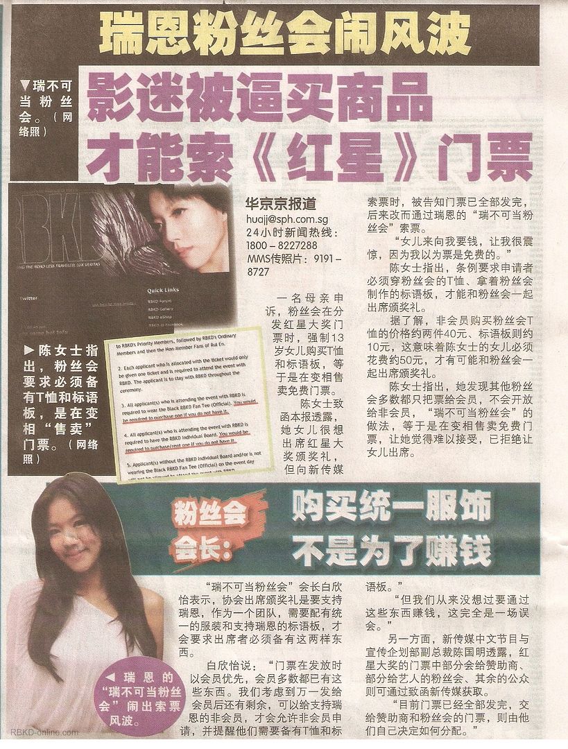 陈女士致函é€éœ²ï¼Œå¥¹å¥³å„¿å¾ˆæƒ³å‡ºå¸çº¢æ˜Ÿå¤§å¥–é¢å¥–ç¤¼ï¼Œä½†å‘æ–°ä¼ 媒索票时,被告知门票已全部å‘å®Œï¼ŒåŽæ¥æ”¹è€Œé€šè¿‡ç‘žæ©çš„“瑞ä¸å¯å½“粉ä¸ä¼šâ€ç´¢ç¥¨ã€‚