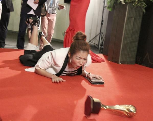 Similarly in local showbiz, Rui En (or rather, Rui En’s character) takes a stumble – quite literally – at an award ceremony staged for her upcoming Ch8 drama series, The Dream Makers. While J-Law waved off her fall with a hearty chuckle and a candid remark to the audience, Rui En’s character Fang Tong Lin makes up for her fall by doing funny faces to the camera.