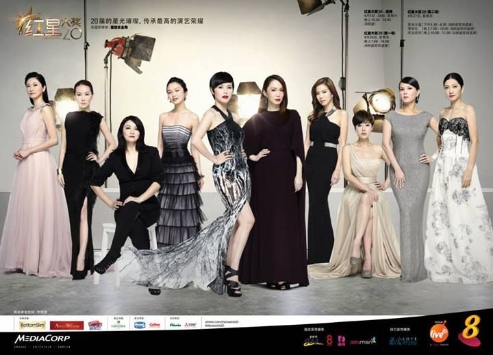 Star Awards 20 commemorative photoshoot which includes featuring past winners of best actress and other awards.