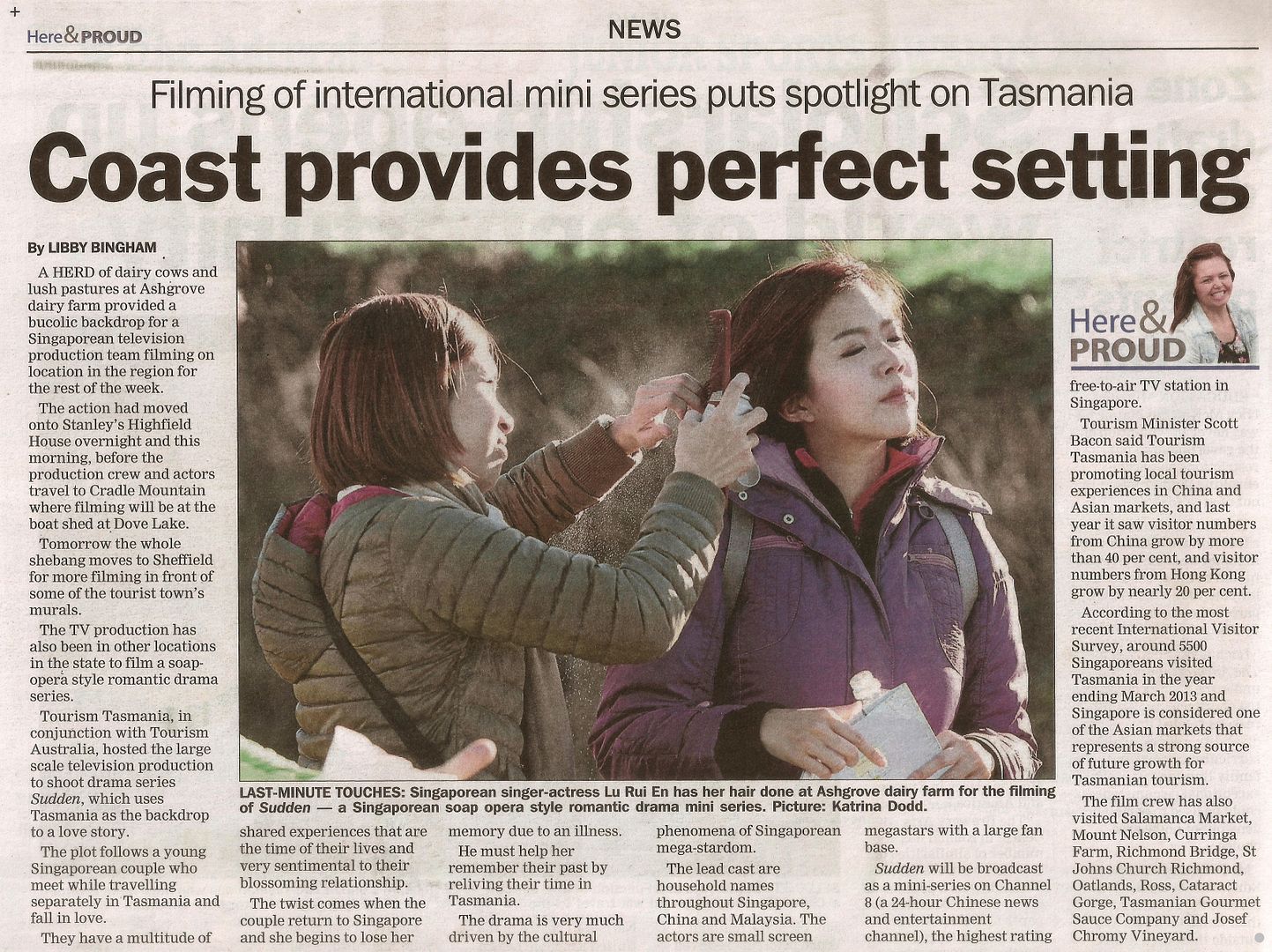 Tourism Tasmania, in conjunction with Tourism Australia, hosted the large scale television production to shoot drama series Sudden, which uses Tasmania as the backdrop to a love story.
