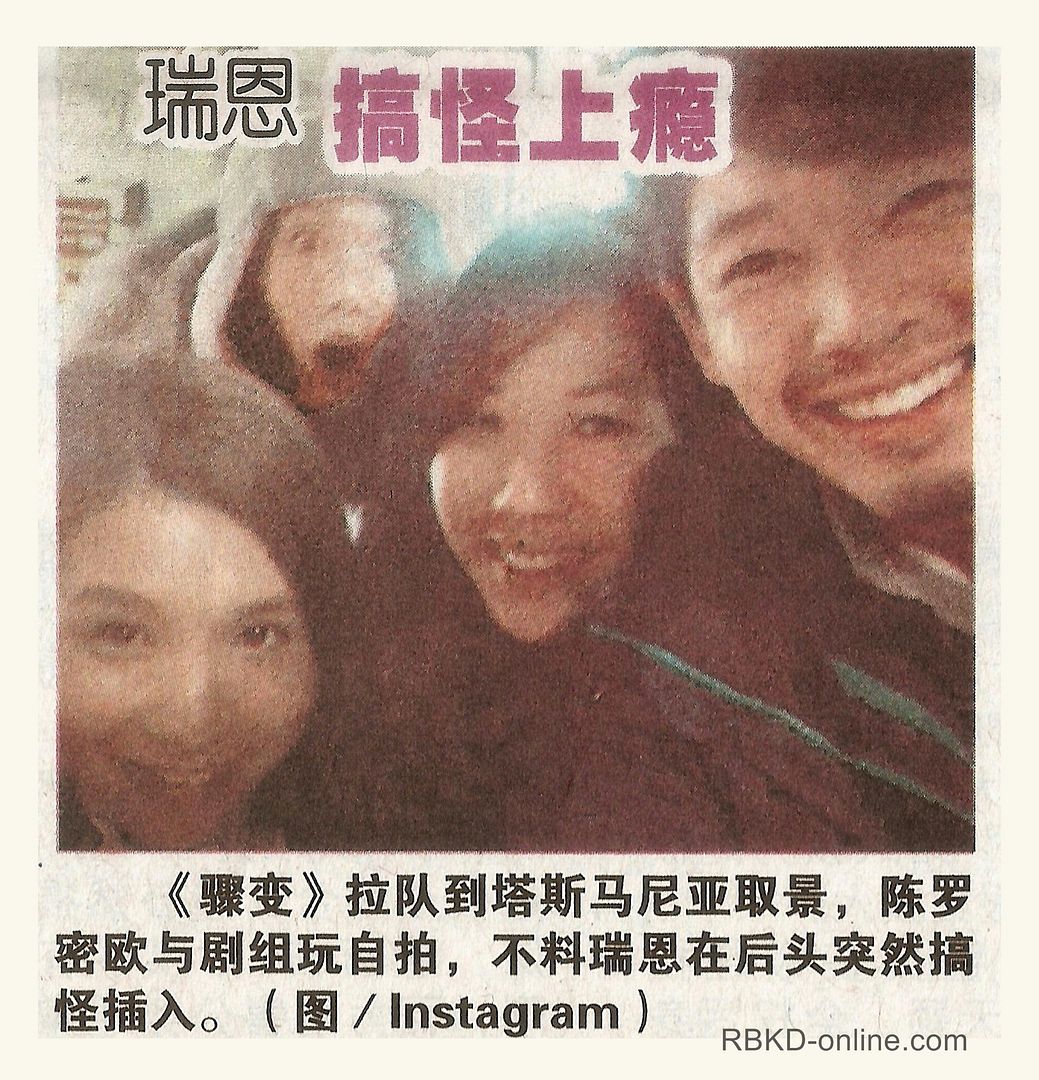 《骤å˜ã€‹æ‹‰é˜Ÿåˆ°å¡”æ–¯é©¬å°¼äºšå–æ™¯ï¼Œé™ˆç½—密欧与剧组玩自æ‹ï¼Œä¸æ–™ç‘žæ©åœ¨åŽå¤´çªç„¶æžæ€ªæ’入。(图/Instagram)