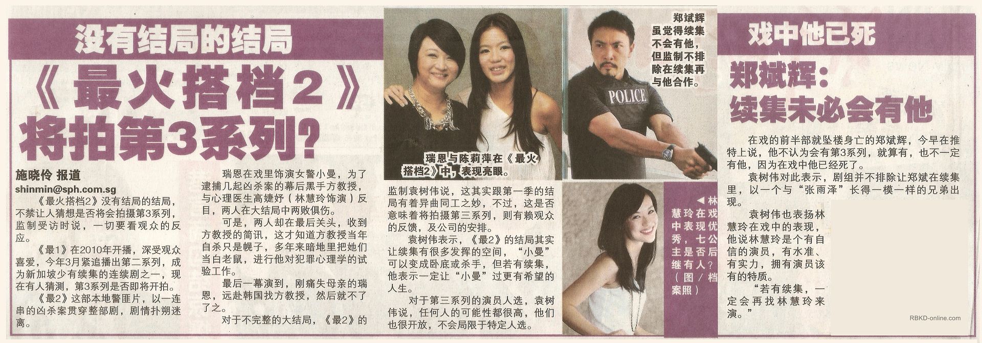 《最1》在2010å¹´å¼€æ’,深å—观众喜爱,今年3月紧追æ’出第二系列,æˆä¸ºæ–°åŠ å¡å°‘有ç»é›†çš„连ç»å‰§ä¹‹ä¸€ï¼ŒçŽ°åœ¨æœ‰äººçŒœæµ‹ï¼Œç¬¬3系列是å¦å³å°†å¼€æ‹ã€‚