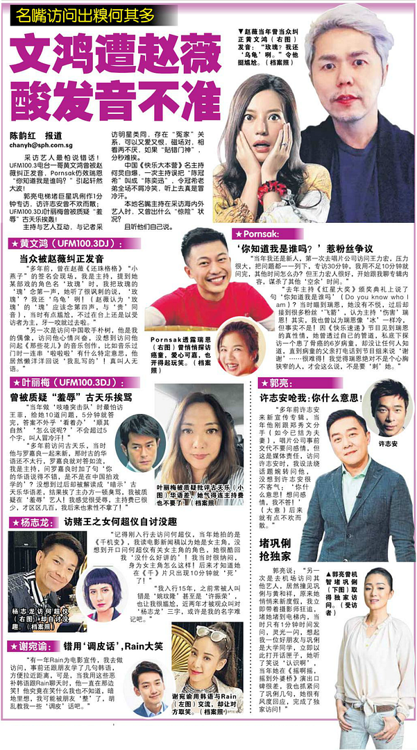采访艺人最怕说错è¯ï¼UFM100.3电å°ä¸€å“¥é»„æ–‡é¸¿æ›¾è¢«èµµè–‡çº æ£å‘音,Pornsak仿效瑞æ©â€œä½ çŸ¥é“æˆ‘是è°å—?â€å¼•起轩然大波ï¼