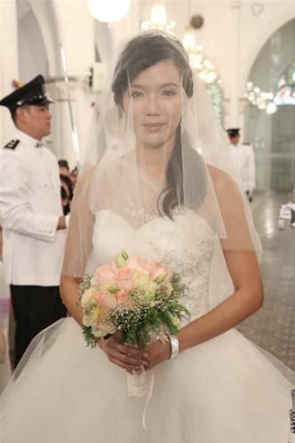 æŽå—星身穿英挺军æœï¼Œç‰µç€æŠ«ä¸Šå…¸é›…斜肩婚纱的瑞æ©ç¼“缓æ¥å…¥æ•™å ‚。